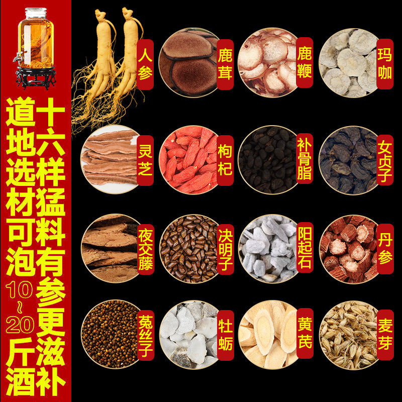 Special medicinal materials for sparkling wine materials, Shiquan Dabu for the elderly, male health, deer whip, ginseng, medicinal wine, and medicinal sprinkling materials, male